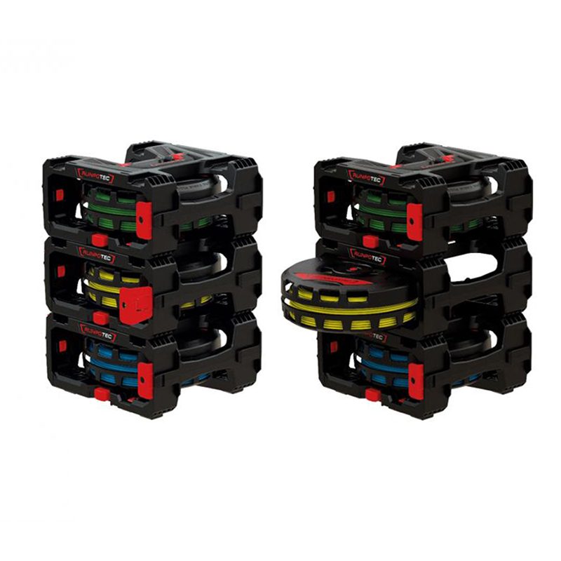 Grâce à leur design empilable et fixable, ils permettent une organisation sur mesure et s’adaptent aux besoins spécifiques de chaque chantier. Leur mécanisme de changement rapide facilite le remplacement des rouleaux, assurant un déroulage fluide et sans enchevêtrement.